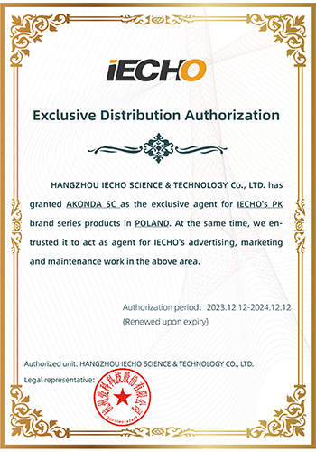 It is now announced that AKONDA SC is appointed as the exclusive agent of PK series products of IECHO in POLAND on December 12th, 2023, and is responsible for IECHO’s advertising,marketing and maintenance work in the above areas.The exclusive authorization is valid for 1 year.